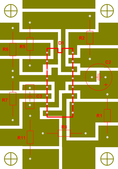 Плата была разделена на две части, для удобства монтажа в корпусе. Желающие могут повторить по подобию или придумать своё исполнение.