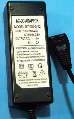 При испытании устройства через 10 мин из входящего в комплект поставки блока питания (БП) модели SY-002-5-12 (рис. 1) стал исходить запах горелого пластика, при этом его корпус сильно нагрелся (нагрузкой был старый жёсткий диск Quantum Fireball). После 10 ч дальнейших испытаний было решено доработать названный БП. Принятию такого решения способствовал тот факт, что имеющиеся в наличии три блока питания, также рассчитанные на ток нагрузки по 2 А для обоих значений выходного напряжения (5 и 12 В) и предназначенные для питания контейнеров для внешних жёстких дисков, практически не нагревались.