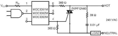 Среди радиолюбителей популярны симисторные оптроны со встроенной цепью контрол я прохождения сетевого напряжения через ноль (zero crossing circuit - ZCC). Ктаким, например, относятся оптроны MOC3161 - MOC3163 [1] и аналогичные. Они часто используются для управления питанием маломощной нагрузки от сети 230 В. Хотя допустимый импульсный ток оптосимистора 1 А, максимальная рассеиваемая мощность всего оптрона при температуре 25 оС равна 250 мВт, поэтому постоянный допустимый ток меньше на порядок, а максимальная мощность нагрузки не должна превышать 20...30 Вт.