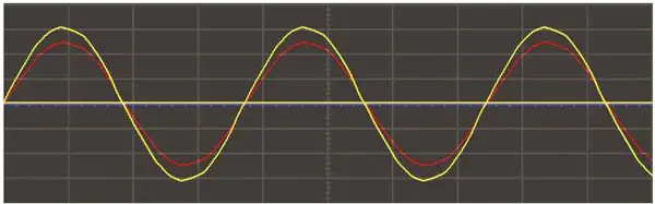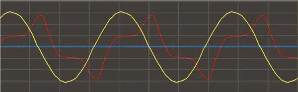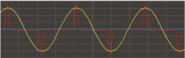 На рис. 5 показаны осциллограммы для случая, когда нагрузкой служит лампа накаливания мощностью несколько ватт (напряжение сети показано жёлтым цветом, тока нагрузки - красным). Оптосимистор открывается, когда через нагрузку начинает протекать ток. На осциллограммах видно, что это происходит в самом начале каждого полупериода сетевого напряжения, т. е. помехи при коммутации действительно минимальны.