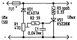 При выходе из строя как линейных, так и импульсных стабилизаторов постоянного напряжения, выполненных на транзисторах или микросхемах, выходное напряжение может стать практически равным входному (выпрямленному) напряжению, обычно снимаемому с конденсатора фильтра питания, установленного на выходе диодного моста. Например, при "прогорании" КР142ЕН5А, которая обычно используется в цепях питания цифровых устройств, на шины питания может поступить напряжение 7...15 В вместо положенных 5 В. Это уже опасно для абсолютного большинства устройств.
