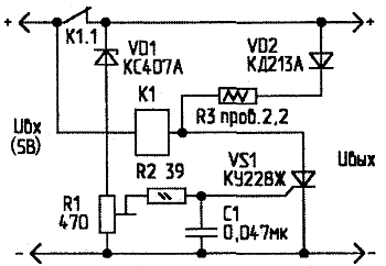 В узлах по схемам на рис.2 и 3 можно устанавливать реле типа РЭК29 от систем ДУ старых отечественных телевизоров, отмотав с его катушки нужное количество витков. Можно приспособить и подходящие по конструкции автомобильные реле.