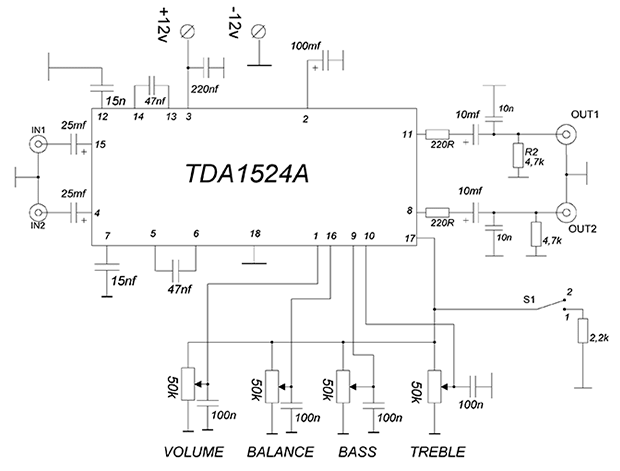 Дело в том, что входной сигнал будет пропускаться через темброблок, собранный на основе TDA1524, а она в свою очередь работает только с двумя каналами.