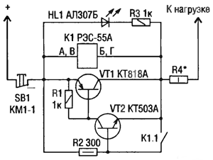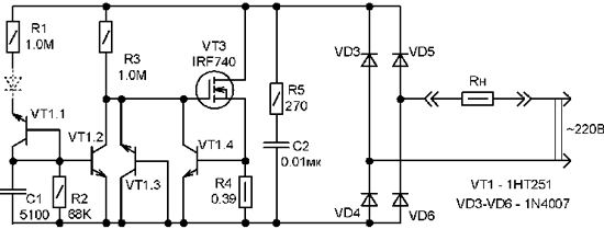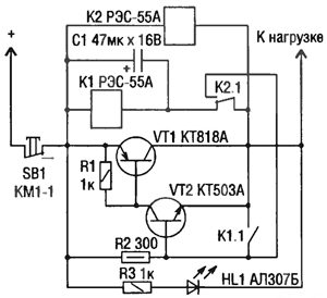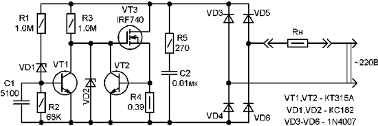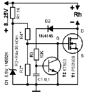 Рис. 5. Схема электронного предохранителя с минимумом деталей