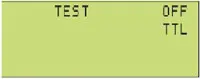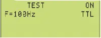 В этом режиме на выходе OUT_TTL присутствует сигнал с частотой следования импульсов 1 МГц, 100 кГц, 10 кГц, 1 кГц, 100 Гц, 10 Гц или 1 Гц (рис. 3). Выбор частоты производится нажатием на кнопку RANGE при включённом режиме. Пример индикации ЖКИ в режиме TEST для частоты 100 кГц приведён на рис. 4.