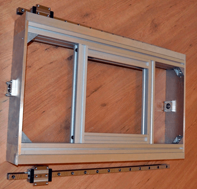 Рама, позиционирующая фрезу в плоскости, будет крепиться к направляющим, размещённым по бокам станины.