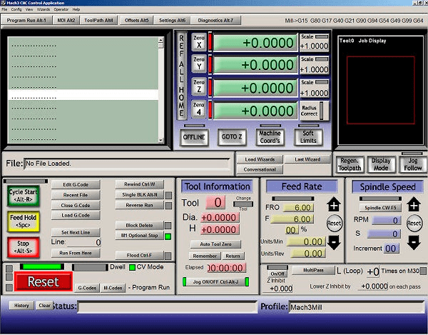 Теперь после полной сборки необходимо установить ПО (ранее упоминалась программа Mach3, её интерфейс можно увидеть ниже) и драйвера на ПК.