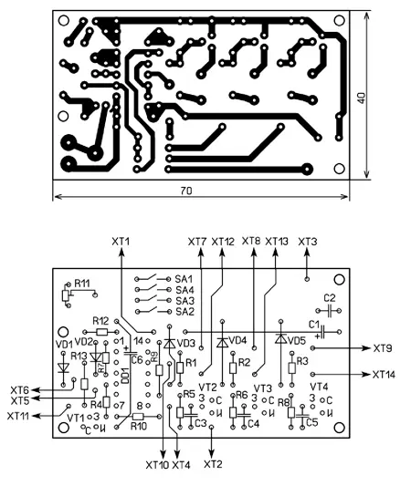 Файл печатной платы устройства в формате Sprint Layout можно найти здесь.