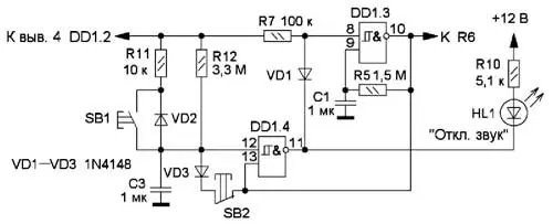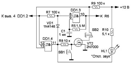 Рис. 3. Схема узла отключения звукового сигнала без использования дополнительного транзистора