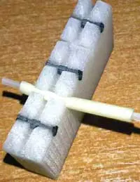 оправках диаметром соответственно 10 и 8 мм стальной проволокой диаметром 0,9 мм, которую обычно используют для протяжки кабелей в гофрированные ПВХ-трубы. Каждая пружина состоит из десяти витков с шагом 3 мм.