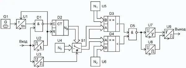 Рис. 1. Функциональная схема селектора-формирователя импульсов заданной длительности