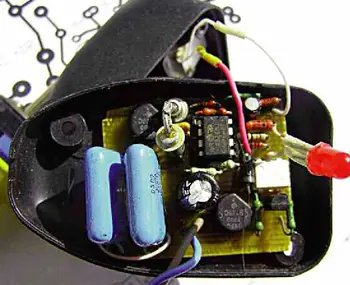 Собранный блок необходимо наладить. Цепь из резисторов R3-R5 временно заменяют двумя последовательно включёнными переменными или подстроечными сопротивлением 2,2 кОм и 200...300 Ом. Далее блок с подключённым паяльником включают в сеть. Добившись движками временных резисторов нужной температуры жала, устройство отключают от сети. Резисторы отпаивают и измеряют общее сопротивление введённых частей. Из полученного значения вычитают половину вычисленного ранее сопротивления R5. Это и будет суммарное сопротивление постоянных резисторов R3, R4, которые выбирают из имеющихся в распоряжении по наиболее близкому к суммарному значению. В разрыв этой резистивной цепи можно поставить выключатель. При его выключении паяльник перейдёт на непрерывный нагрев. Для тех, кому нужен паяльник на несколько режимов пайки, предлагаю поставить переключатель и несколько резистивных цепей на разные режимы. Например, для мягкого припоя и для нормального припоя. При разрыве цепи - форсированный режим. Мощность применяемого паяльника ограничена предельным током выпрямительного моста КЦ407А (0,5 А) и оптрона МОС3063 (1 А). Поэтому для паяльников мощностью более 100 Вт необходимо установить более мощный выпрямительный мост, а оптрон заменить оптоэлектронным реле нужной мощности.