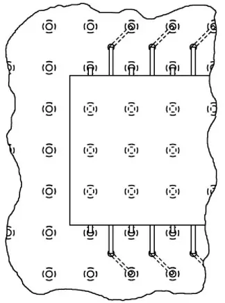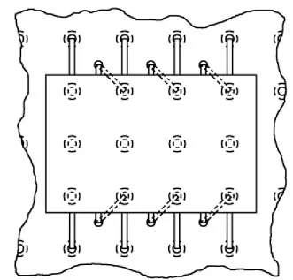 В макетной плате в месте расположения микросхемы в промежутках между имеющимися контактными площадками сверлят дополнительные отверстия диаметром 0,7-0,8 мм. Выводы микросхемы формуют - изгибают под прямым углом в чередующемся порядке, с минимальным радиусом и радиусом 1,5 мм. Микросхему размещают на макетной плате, причём выводы, пропущенные во вновь просверленные отверстия, изгибают с обратной стороны платы и подводят к ближайшим свободным контактным площадкам. На рис. 1 показан фрагмент макетной платы со смонтированной микросхемой в корпусе 401.14-4 (размеры микросхемы 10x6,5x2,3 мм) или 401.14-5 (10x6,7x1,97 мм), на рис. 2 - в корпусе 402.16 (11,5x9,3x2,5 мм). Далее соединения выполняют, как обычно, лужёным проводом диаметром 0,2-0,4мм и МГТФ 0,07. Если применяется универсальная макетная плата с двусторонними контактными площадками с металлизированными отверстиями, то на основание микросхем в металлостеклянных и металлокерамических корпусах необходимо наклеить полоски лакоткани для исключения замыкания контактных площадок, расположенных под корпусом микросхемы.