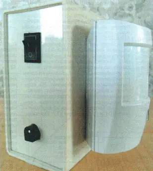Устройство собрано на макетной плате проводным монтажом и помещено в пластмассовый корпус подходящего размера (рис. 3). На его передней стенке размещены извещатель "Рапид" и светодиоды HL1 и HL2. Чтобы светодиоды меньше привлекали внимание, их можно установить на правой боковой или на задней стенке корпуса. На левой боковой стенке находятся выключатель SA1 и разъём для подключения зарядного устройства.