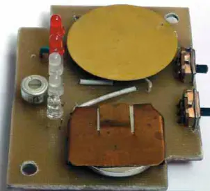 В качестве BQ1 применён пьезоэле-мент FT-27T-4.0A1 диаметром 27 мм. Он установлен над платой на трёх припаянных к нему проволочных стойках, две из которых одновременно служат выводами пьезоэлемента.