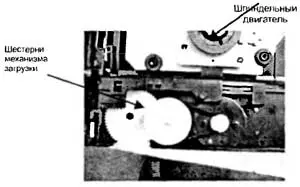 Проверяют исправность двигателя загрузки. Для чего, при отключенном от схемы двигателе, подают на его выводы напряжение 5 В и контролируют вращение оси. Если ось не вращается (или вращается с трудом), можно попытаться восстановить исправность двигателя, путем очистки его от загрязнений. Для этого помещают корпус двигателя в спирт и подают напряжение на его клеммы - таким образом пытаются промыть его. После промывки двигатель сушат сжатым воздухом. Если таким образом восстановить двигатель не удалось, его заменяют. При этом можно заменить двигатель на аналогичный с любого неисправного привода CD или DVD. Желательно подобрать двигатель с тем же сопротивлением обмотки (около 30 Ом).
