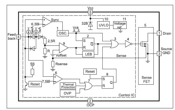 Структурная схема микросхемы STR-G6153T приведена на рис. 11. В ее состав входят следующие элементы: