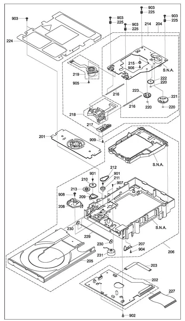 | 204 | AH91-60147A | ASSY-BRKT DECK; DP-3,DVD909 - механизм привода дисков |