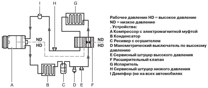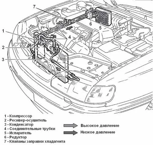 Рис. 2. Общая схема системы кондиционирования легкового автомобиля