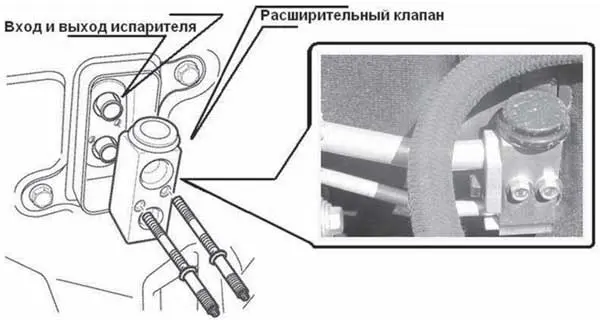 Расширительный клапан находится непосредственно рядом с испарителем (см. рис. 10.).