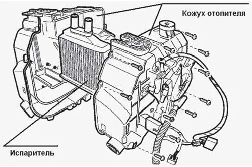 На рис. 11 показан один из примеров расположения испарителя в корпусе отопителя.