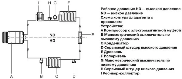 Хладагент, циркулируя в закрытом контуре климатической системы под определенным давлением, постоянно переходит из жидкого состояния в газообразное и наоборот.