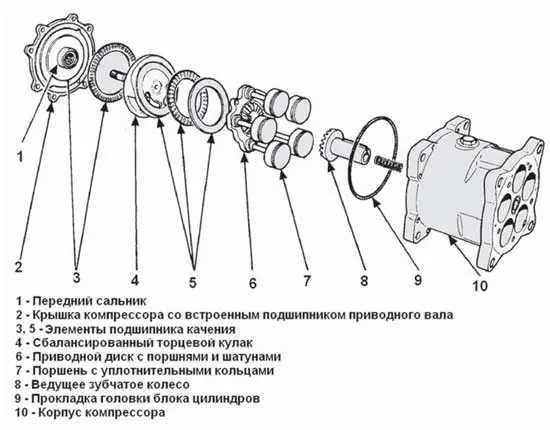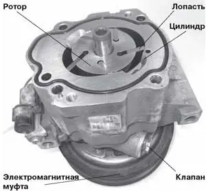 После отключения электромагнитной катушки под воздействием пружин диск отходит от ременного шкива и компрессор выключается.