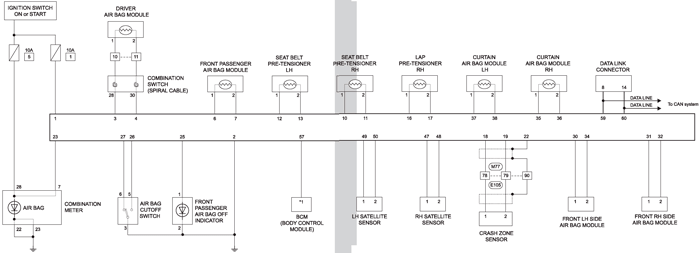 Рис. 10. Электрическая схема системы SRS автомобиля Nissan Juke