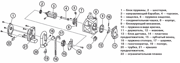 Рис. 5. Конструкция шарикового преднатяжителя ремня безопасности