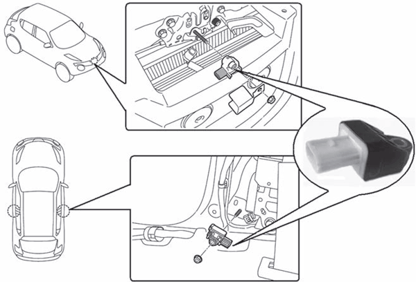 Рис. 7. Расположение датчиков удара на примере автомобиля Nissan Juke