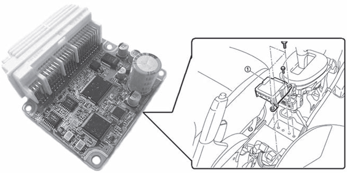 Рис. 8. Блок управления системой SRS и пример его расположения на автомобиле Nissan Juke