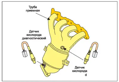 Общий вид приемной трубы с нейтрализатором показан на рис. 1. Кроме того, в модернизированной системе управления двигателем появилось несколько новых датчиков.