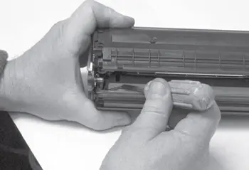 Перед началом выполнения работ по заправке картридж желательно установить в устройство и распечатать пробную страницу или встроенный тест, который поможет определить необходимый объем работ по заправке и восстановлению картриджа. Перед печатью пробной страницы колебательными движениями распределяют остатки тонера в бункере картриджа.