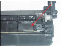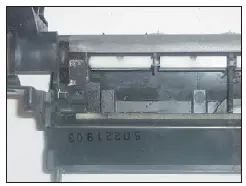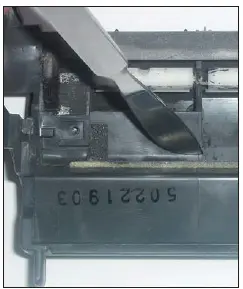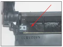 стрелками на рис. 4 и 5). После удаления отработанного тонера через технологические отверстия, предусмотренные в конструкции узла DRUM UNIT, в этих секциях все равно остается отработанный тонер - ему просто мешают упомянутые выше перегородки. Этот тонер со временем стирает светочувствительный слой на краях фотобарабана,значительно снижая ресурс последнего. Поэтому при удалении отработанного тонера нужно более тщательно встряхивать узел DRUM UNIT, чтобы скопившийся порошок в боковых секциях бункера "высыпался" через перегородки. Подобную проблему можно решить более радикально, попросту удалив эти перегородки. Эту операцию, на-