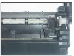 После удаления пластмассовых перегородок в бункере и остатков отработанного тонера тонким тканым материалов (например, батистом) протирают от загрязнений резиновый вал. Затем смазывают металлическую часть вала токоп-роводящей пастой (только ту часть, которая вставляется в то-копроводящую втулку - она черного цвета). Пасту лучше использовать на основе графита, так как пасты на основе металлических (бронзовых)наполнителей со временем густеют и мешают свободному вращению вала.