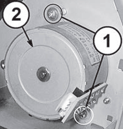 2. Откручивают два винта (1 на рис. 41) крепления двигателя (2) и снимают его с устройства.