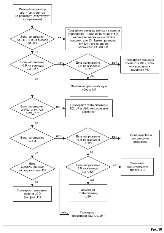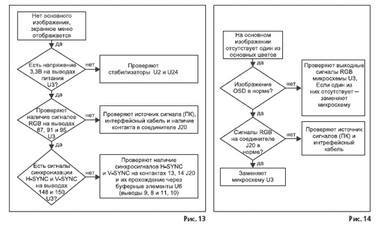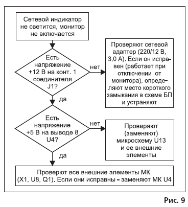 Типовые неисправности монитора, а также методика их поиска и устранения приведены в виде диаграмм (рис. 9-14).