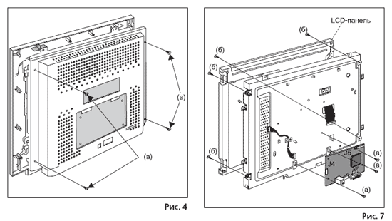 Выкручивают четыре винта (в) и снимают LCD-панель (рис. 7).