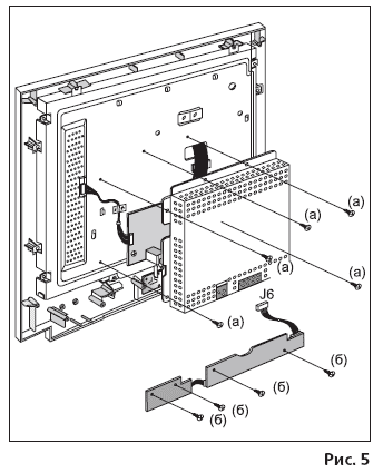 Выкручивают четыре винта (в) и снимают плату панели управления (рис. 5).
