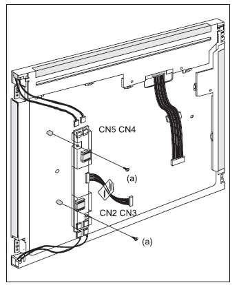 Отсоединяют шлейфы от соединителей CN2-CN5, выкручивают два винта (а) и снимают плату конвертера (рис. 8).