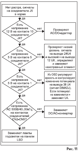 Нет растра, сигналы на соединителе LCD-панели (J5) в норме (рис. 11);