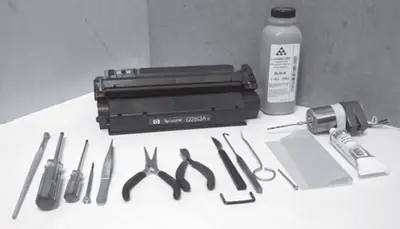 Для выполнения работ по заправке и восстановлению картриджа Q2613A/X необходим следующий набор инструмента и расходных материалов (рис. 1):