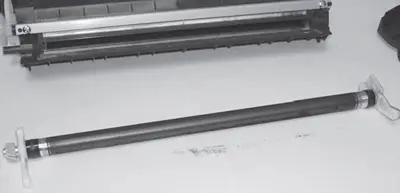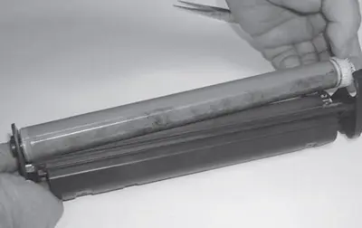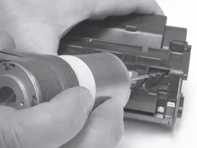 23. Очищают оболочку магнитного вала от тонера пылесосом и протирают безворсовой салфеткой. В случае обнаружения налипшего тонера для его удаления возможно использовать ацетон.
