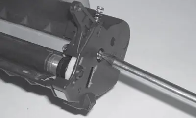 11. Безворсовой салфеткой протирают поверхность вала первичного заряда. Если поверхность чистая и повреждения отсутствуют, то вал устанавливают на место. При обнаружении механических повреждений вал заряда необходимо заменить.