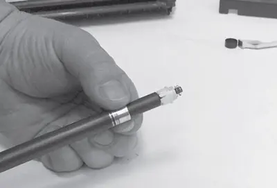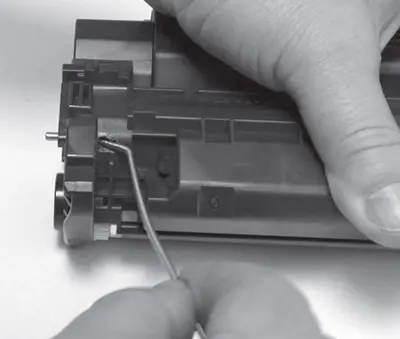 5.5. Пинцетом или крючком захватывают вал первичного заряда за металлическую ось и аккуратно извлекают из корпуса картриджа (рис. 10). Обращают внимание на то, что при снятии/установке вала первичного заряда не следует прикасаться к оболочке вала руками и инструментом.