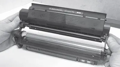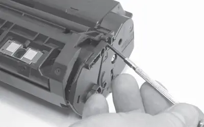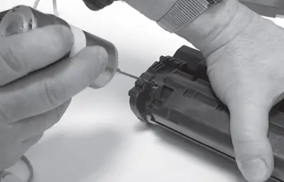 Перед выполнением работ по заправке желательно установить картридж в устройство (принтер) и распечатать пробную страницу. Анализ качества полученной распечатки поможет определить необходимый объем работ по восстановлению картриджа. Перед установкой картриджа в принтер колебательными движениями необходимо распределить остатки тонера в бункере картриджа.