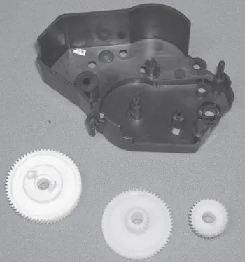 15. Наносят на оси вращения шестерен тонкий слой смазки, устанавливают шестерни на место и проверяют легкость вращения (рис. 27).