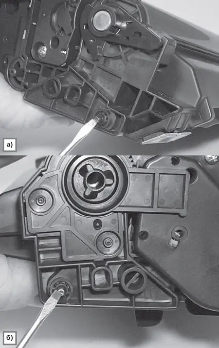 - переворачивают картридж на 180 градусов и выполняют аналогичные операции с другой стороны (рис. 33 б).
