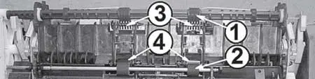 Очищают от загрязнений выходные валы транспорта бумаги (1 и 2 на рис. 16) и прижимные ролики (3, 4). Проверяют наличие прижимных пружин роликов и правильность их установки.