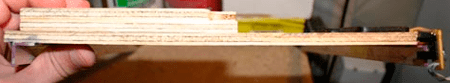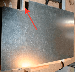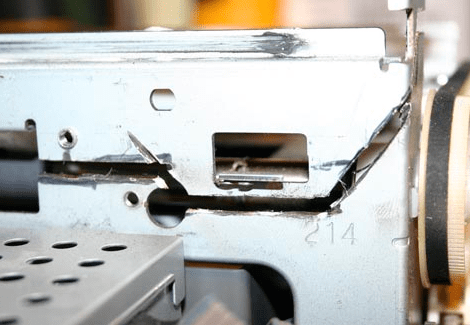 13.Бумагу заменяем прочным листовым материалом (например, листом алюминия, подразумевается формат A4), однако, чтоб датчик подачи бумаги сработал верно (он же сменил свое местоположение после демонтажа) в листе следует сделать вырез (90 мм).